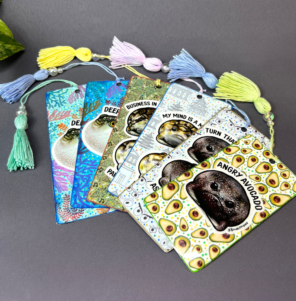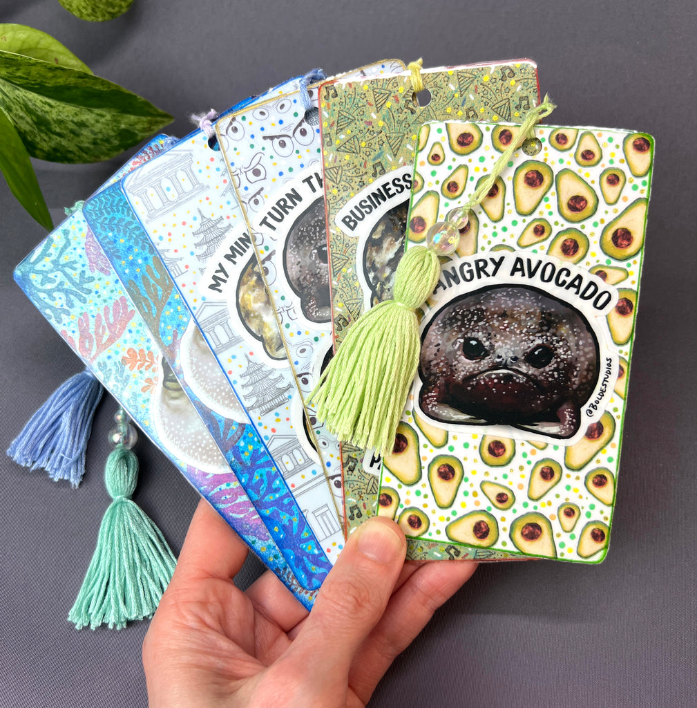 Curl up with your favorite book in style! These one-of-a-kind bookmarks are handmade by friend and fellow creator, Bianca from Bianca's Creative Disorder, using our vinyl stickers. Each features fabulous original designs with hand-drawn elements, they're protected with lamination and finished with a delicate tassel and iridescent bead.