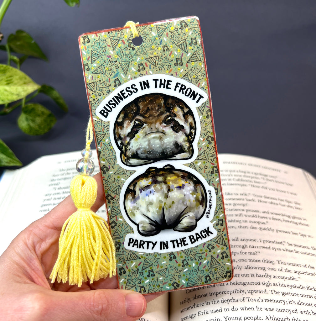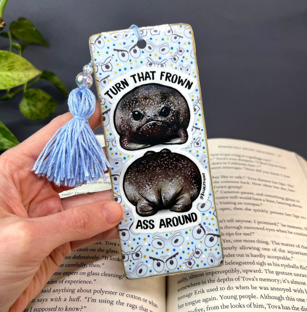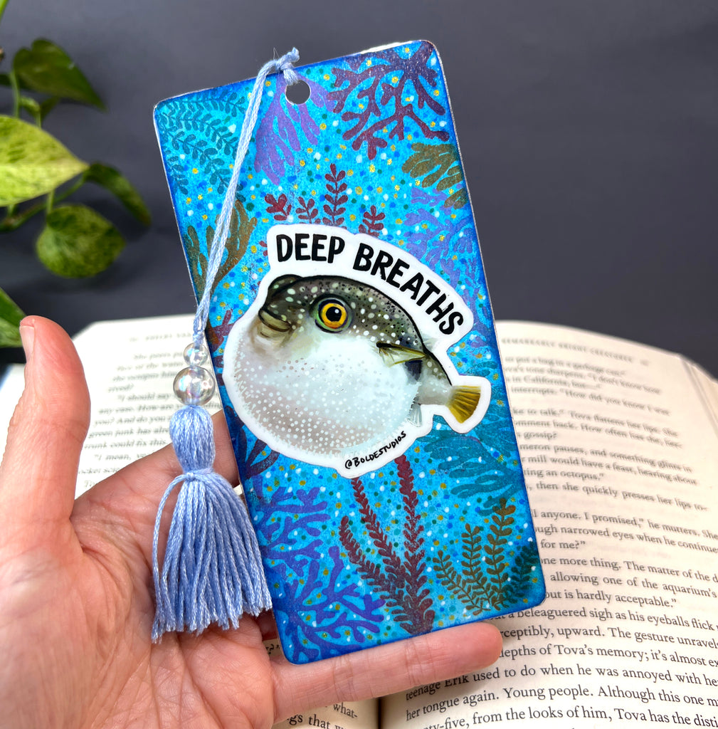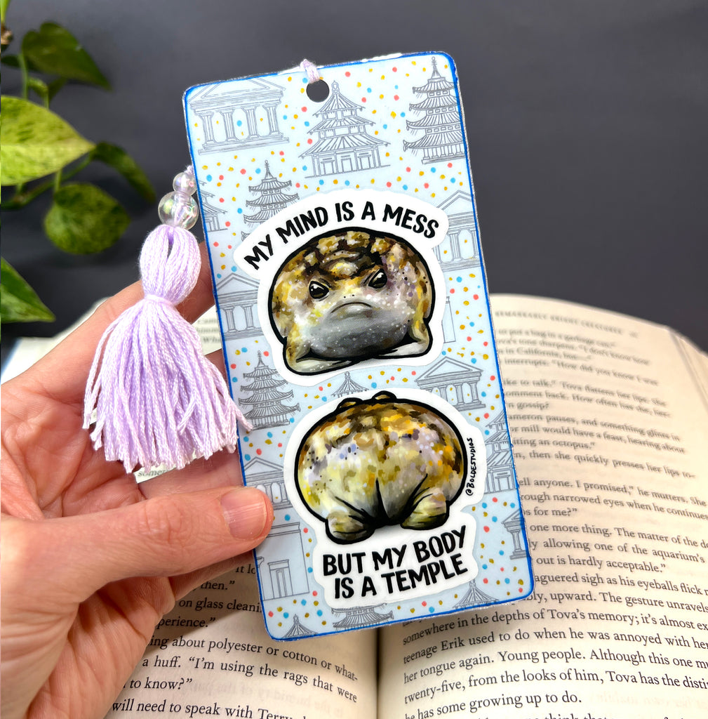 Due to the handmade nature of these bookmarks, there may be minor imperfections and the colors may vary from your screen. Vinyl stickers are an original illustration by Becca, printed on Vinyl. Bookmark materials: paper, plastic, polyester. Click here for the full list of materials and product care.