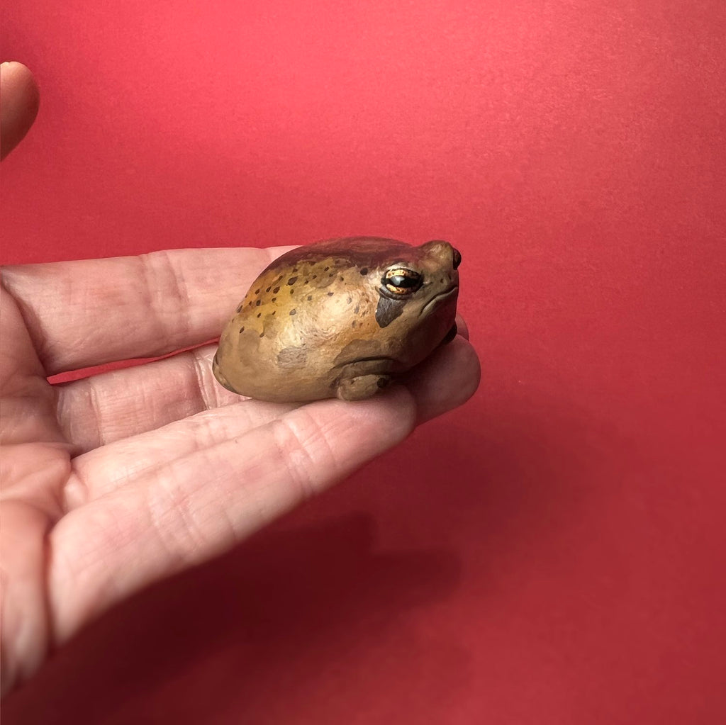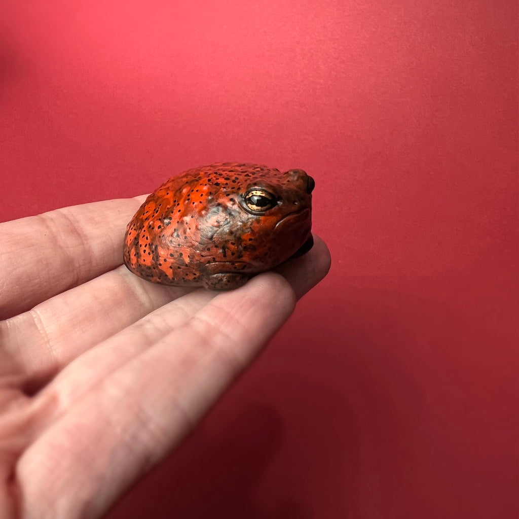 Each one is carefully painted by hand and sealed with a protective varnish, with UV gloss added to the eyes. These frogs are even smaller than the original minis, measuring about 4cm (1.5”). They are printed in solid resin, giving them a hard, pebble-like feel.