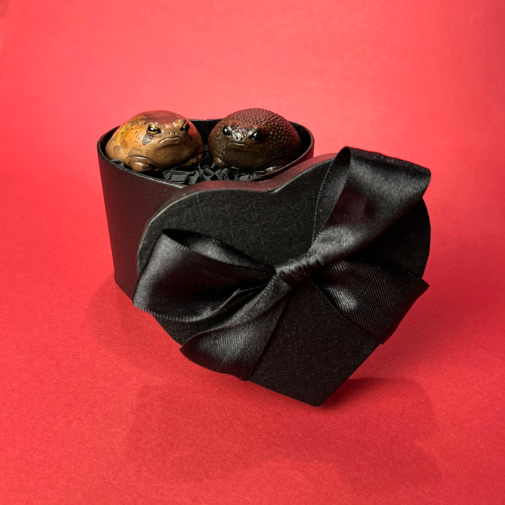 • A pair of frogs of your choice, placed in a heart-shaped box with a satin ribbon